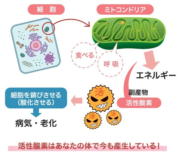 そして、この酸化ストレスを引き起こす主な原因物質が「活性酸素」なのです。