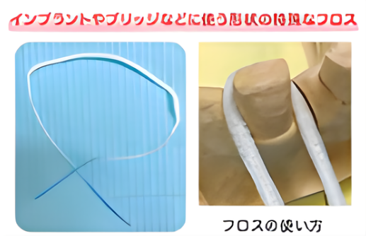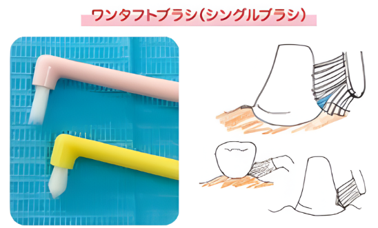 補助的な清掃用具を使いましょう 孤立歯 や、歯が欠損した部分の隣の面 など、歯ブラシが届きにくい場所には、「ワンタフトブラシ(シングルブラシ)」 や「インプラントフロス」 といった補助的な清掃用具を日常的に使うことをお勧めします。 ワンタフトブラシなどを使う場合は、鏡を見ながらゆっくり行うと良いでしょう 。