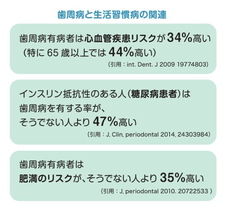 本来、口腔から咽頭(のど)にかけては、扁桃などに多くの免疫細胞が集まり、外敵から身を守るための強力な防御システムが備わっています。しかし、その手前にある「歯肉」という弱い部分から、炎症の原因菌が直接侵入してしまっているのが現状です。 歯周病をきっかけに他の病気が発症し、次々とドミノ倒しのように全身の健康が脅かされていくリスクが、ここにはあります。